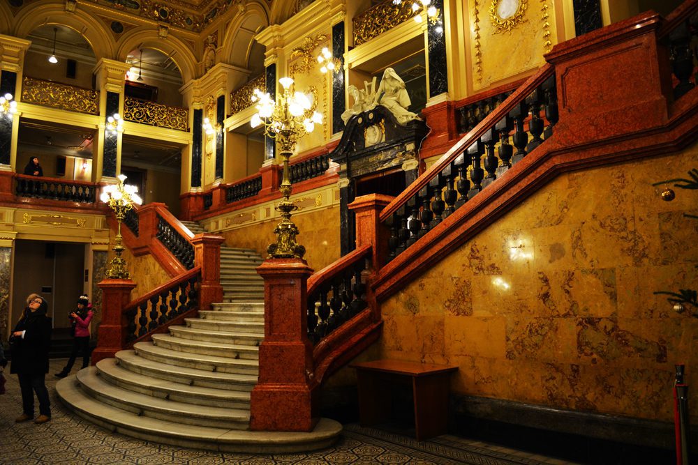 - Справжнім витвором мистецтва є вестибюль театру. Над ним працювали італійські майстрі, під керівництвом Тадеуша Попеля. На стінах містяться різні візерунки, скульптури та картини, деякі з яких оздоблені позолотою.